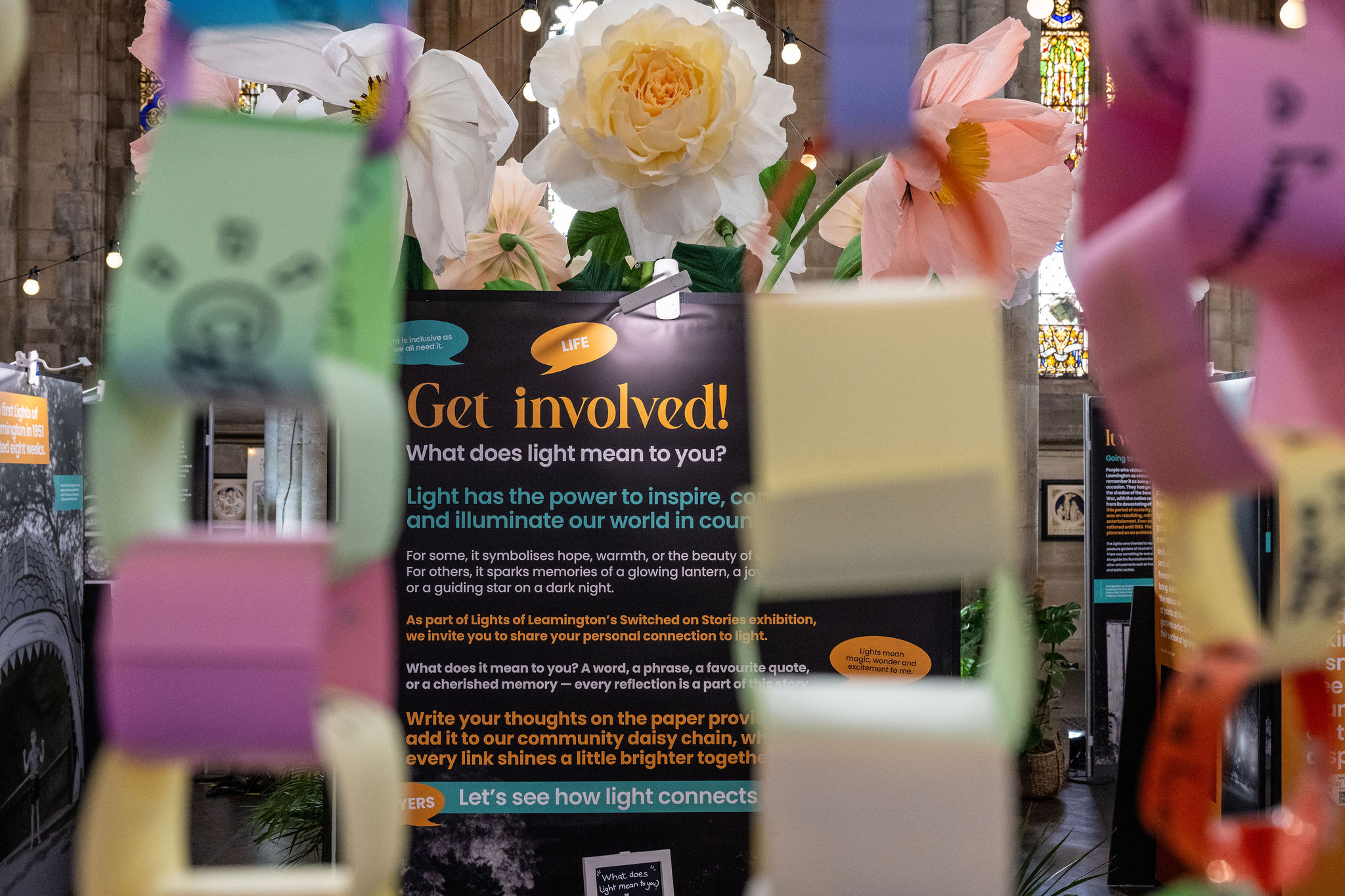 Over 17 days, 6700 people attended the ‘Switched on Stories’ exhibition in All Saints Church (8-23 Feb), and over 5 days, a whopping 39,000 people visited Jephson Gardens for ‘Spotlight Festival’ (19-23 Feb). We hosted two sold-out Candlelight Concerts and two nights of Silent Disco that engaged 1400 people, and enjoyed meeting over 700 children and 280 adults at our free half-term workshops. Many others enjoyed the town centre trails, workshops and murals.